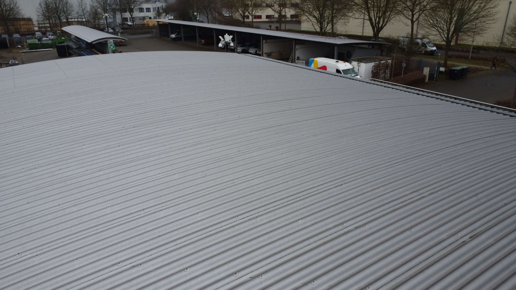Heute haben wir eine Ortsbesichtigung mit einem Solateur durchgeführt, um technische Details abzuklären. Besondere Herausforderung bei diesem Dach ist die Tonnenform, für die ein geeignetes Montagesystem ausgewählt werden muss. Die Befestigung erfolgt per Verschraubung in die Trapezbleche.