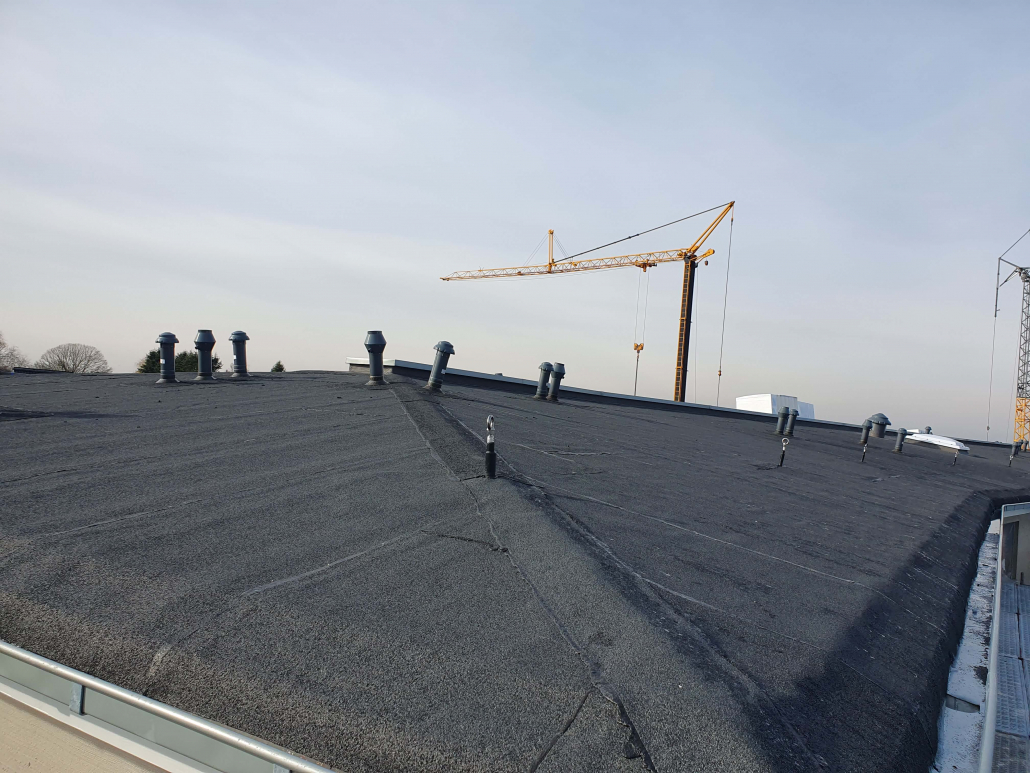 Wir waren mit einem Solateur vor Ort. Hier ist die besondere Herausforderung, dass ein besondere Unterkonstruktion verwendet werden muss, die für das flach geneigte Dach zugelassen ist. Eine Ballastierung soll die PV-Anlage fixieren ohne Verschraubung. Überraschend war, dass auf dem First ein Entlüftungskasten vorhanden ist und dass es viele Dachdurchlässe gibt. Der Solateur prüft nun die Möglichkeiten.